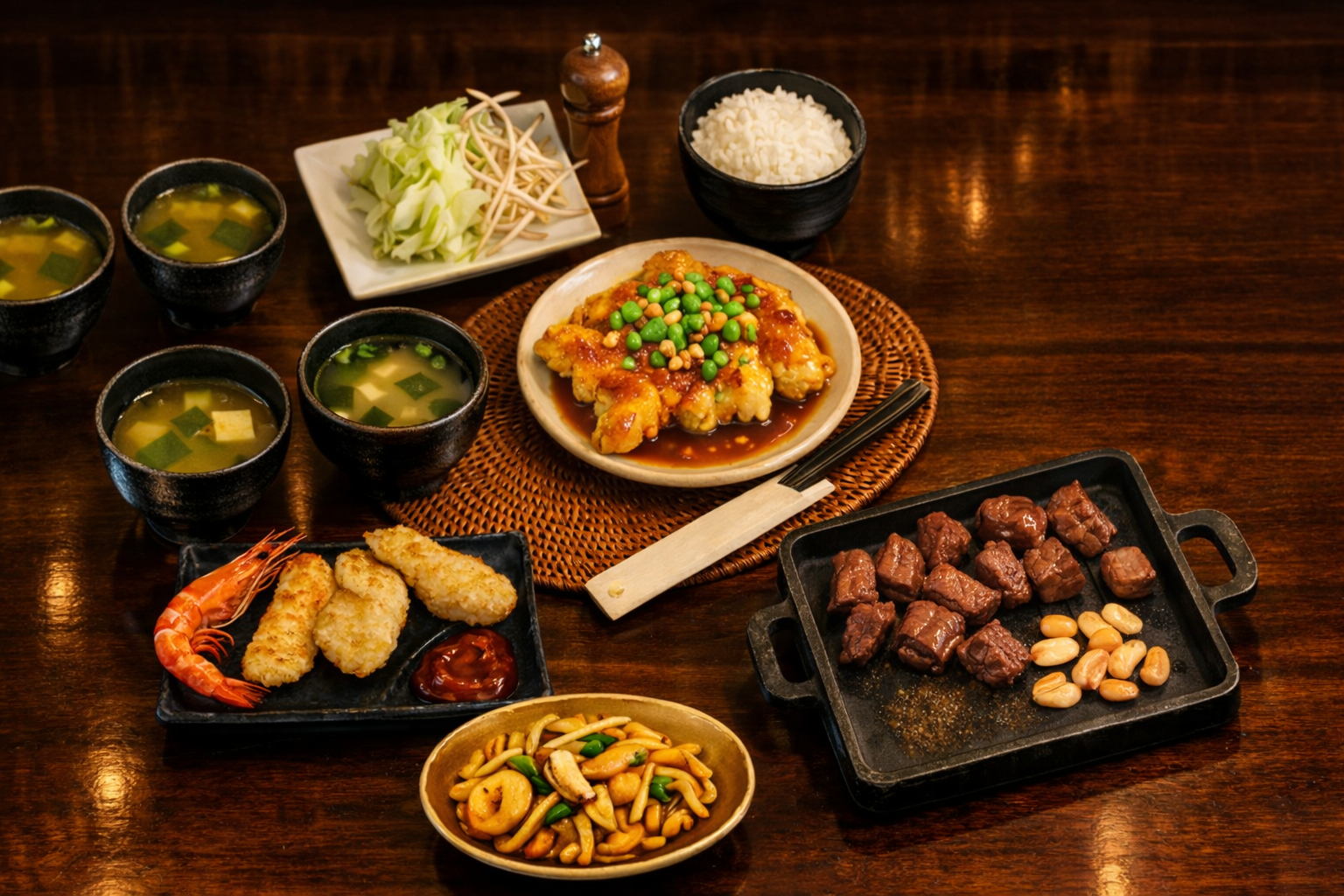 酥香鮮魚 + 獨門醬汁爆炒三鮮 + 香煎鮮蝦四尾