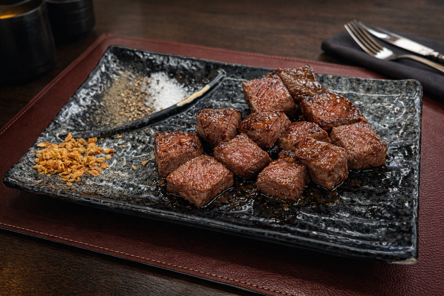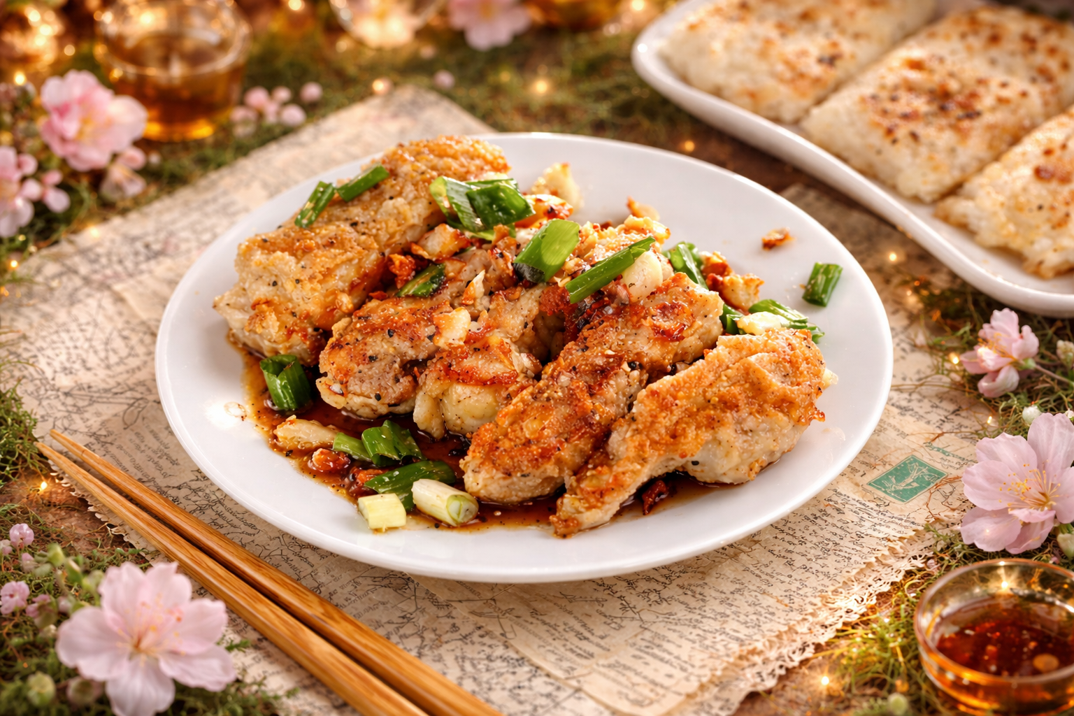 每一口肉片都均勻沾附蒜香椒鹽,香氣四溢,帶來獨特的風味層次。